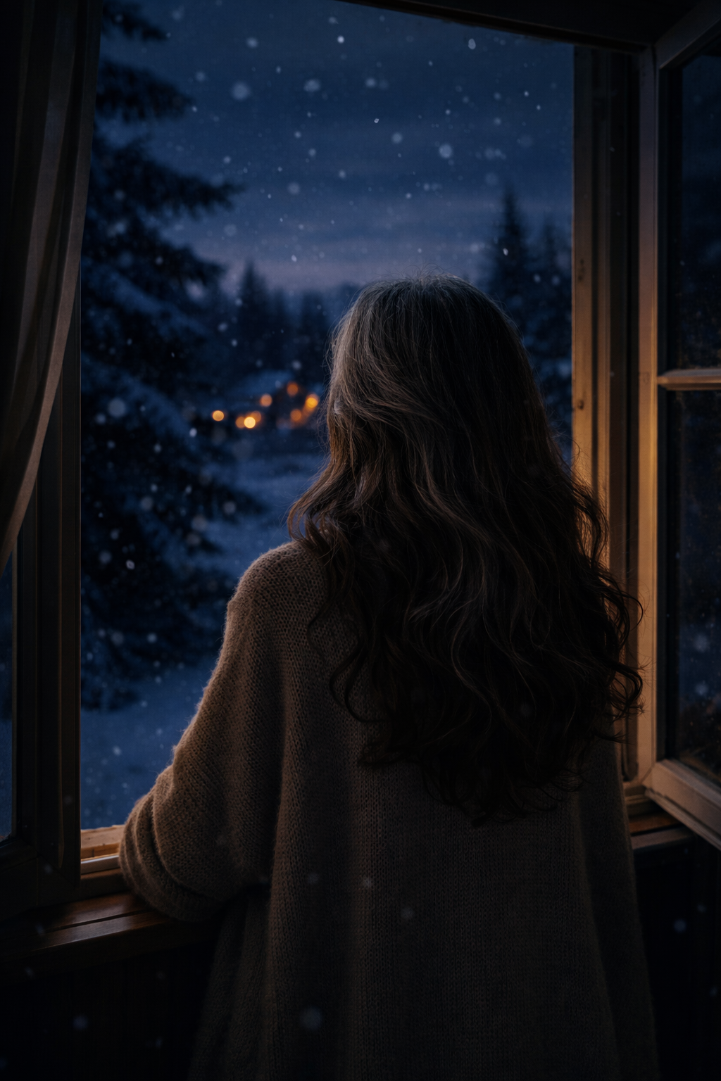 I stand quietly by the open window, white flakes float weightlessly, softly, silently, they dance in the air.