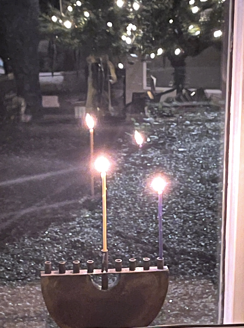 So I’ll nail the words upon my door, writ with ink on skin. Two candles in my window whisper ‘This is who I am.’ I’ll join the fight if war arrives; lend my hand and gun. I pray this time they’ll stand by me, stand by everyone. For then we’ll see no Torah burn, no synagogue undone.