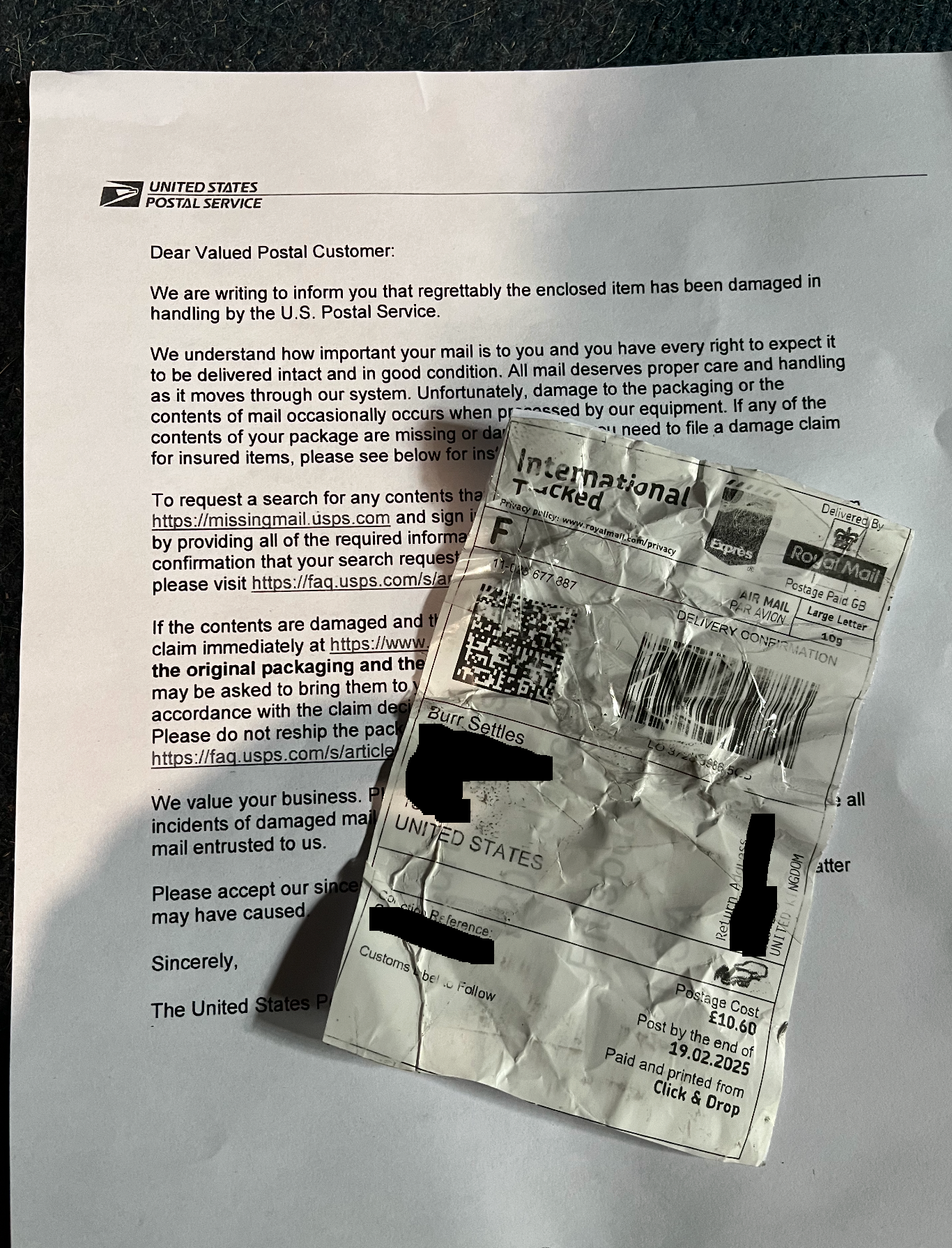 all i (burr) ever received was the shipping label and apology letter below...